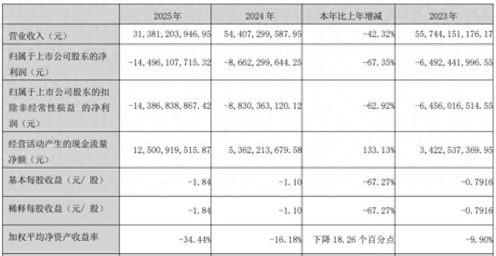 2025年,公司完了贸易收入313.81亿元,同比减少42.32%,完了归母净利润-144.96亿元,同比减少67.35%。