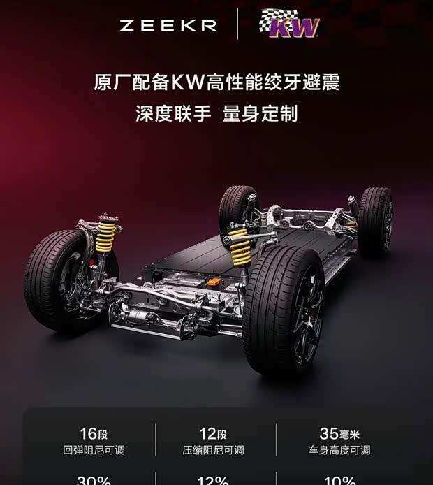 底盘部分,新车原厂标配了KW高性能绞牙避震器开云体育官方网站,支握16段回弹阻尼与12段压缩阻尼调节,车身高度调节鸿沟达35毫米。极氪与德国KW团队历时三年完成适配标定,通过赛车级台架进行了越过200项参数调试,旨在进步车辆的操控踏实性和行驶质感。该车还支握极氪赛谈款式,提供竞速、目田漂移、智能缓助漂移及AI教师等功能。