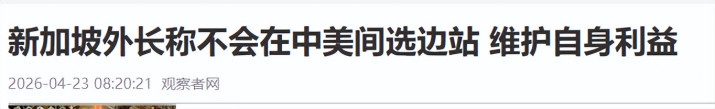 1.《新加坡外长称不会在中好意思间选边站贵重自身利益》2026-04-2308:20:21 来源:不雅察者网