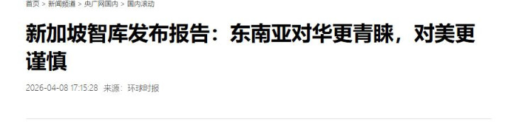 2.《新加坡智库发布敷陈:东南亚对华更醉心开云app,对好意思更严慎》2026-04-08 17:15:28 来源:环球时报