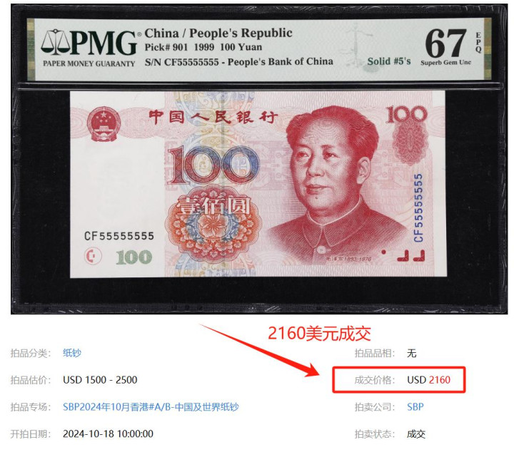 比如底下这张数字5麒麟号,最终的拍卖成交价为2160好意思元。折合东说念主民币要1.47万元!