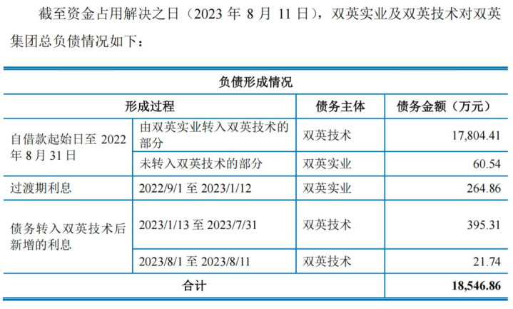 但2019年启动,双英实业因银行贷款辘集到期等需要,出现了资金缺口,为缓解其偿债压力,确保其名下不动产不会被强制施行,截止2019年末双英集团及子公司向双英实业提供了1.7亿元资金扶直,拆出的资金主要用于双英实业偿还银行借债的本金和利息、支付工程款等,联系资金有明确的用途,资金流向了了,不存在体外资金轮回的情况。