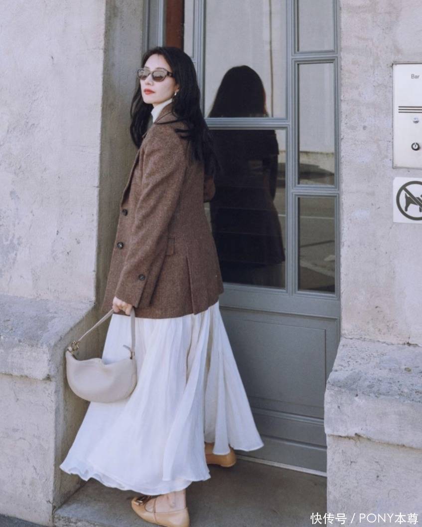 可爱大气优雅嗅觉的女性,不错参考高圆圆的搭配想路,穿一款棕色西装外衣,内搭白色高领衫,下半身搭配白色萧洒纱质半身裙,脚踩棕色乐福鞋,好意思的光彩照东说念主!