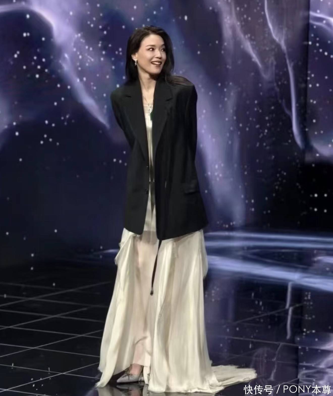舒淇确切少量王人不显老!穿西装外衣,搭配一条不法律发挥注解裙摆长裙,慵懒又随心,自带松弛气质!